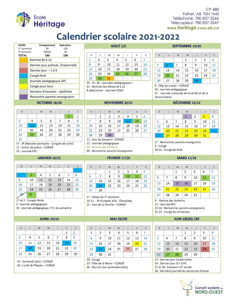 Calendrier 2021 2022 HÉR révisé